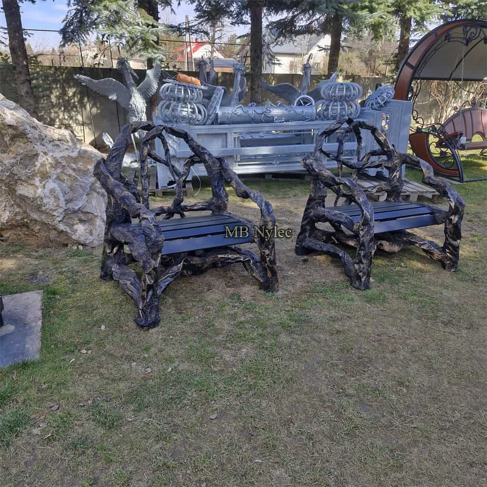 Powyższe fotele wykonujemy w dowolnych wielkościach oraz możemy wykonać dowolną modyfikację kształtu. Doskonały uzupełnieniem dla powyższych foteli jest ławka kuta w kształcie drzewa mk84