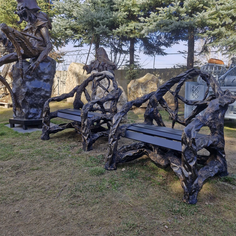 Niezwykły kształt naszych foteli nadajemy ręcznie specjalną techniką kucia stali. Technika ta została stworzona w naszym zakładzie i jesteśmy jedynym miejscem na świecie gdzie mogą Państwo takie fotele zamówić. Według życzenia klienta możemy również w dowolny sposób kształtować masyw powyższych foteli, mogą być one zrobione ze stalowych konarów drzewa bardzo zbliżonych to tych które widać na zdjęciach, lub też możemy wykonać je dużo subtelniej stosując znacznie delikatniejsze konary. W dowolny sposób również mogą Państwo kształtować materiał z którego wykonamy siedzisko oraz oparcie, możemy wykonać je ze stali tak jak na zdjęciu, bądź na przykład z drewna.
