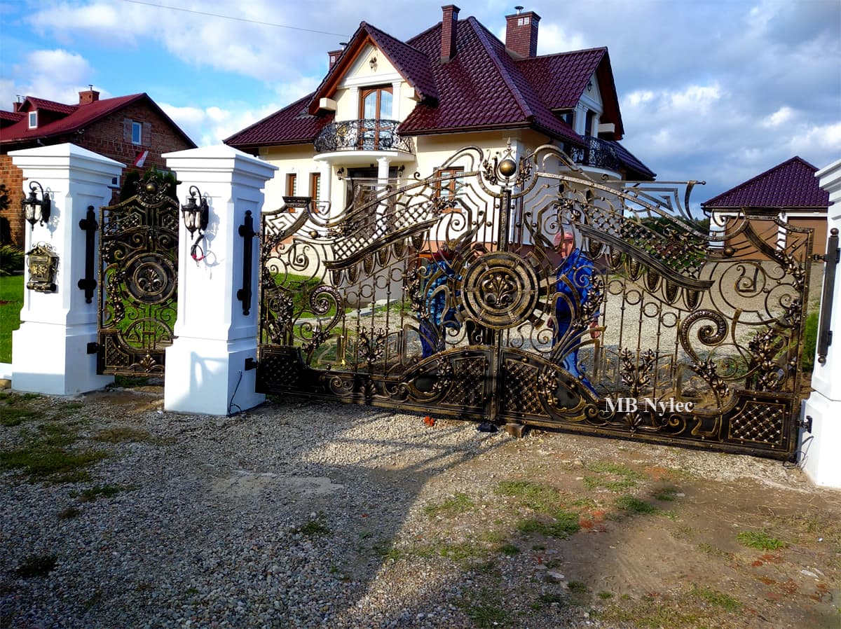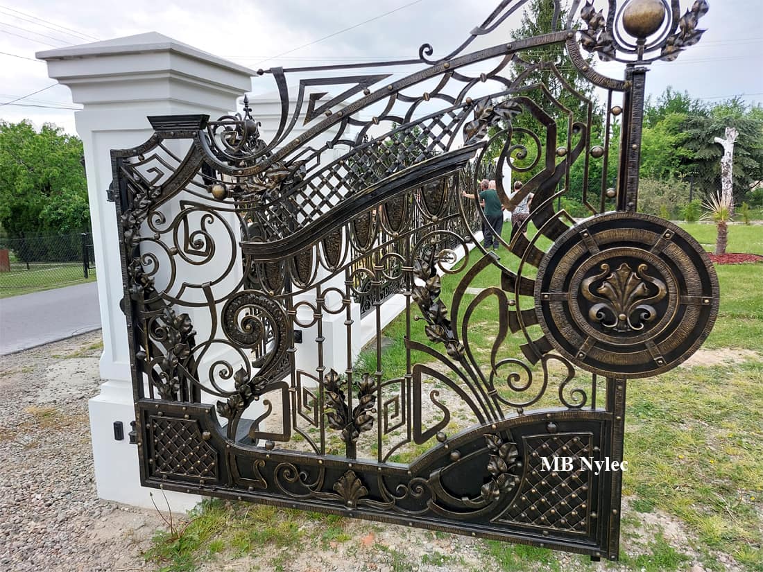 Brama ta została wyprodukowana z najlepszych materiałów poddanych specjalistycznej obróbce kowalskiej. To właśnie staranna obróbka decyduje o wysokiej trwałości oraz doskonałym wyglądzie każdego elementu z osobna. Jest to wynik pracy prawdziwych pasjonatów i artystów w swoim fachu. Kute bramy charakteryzują się wysoką trwałością i odpornością na czynniki atmosferyczne, dzięki czemu prezentują się doskonale nawet po wielu latach. O wysokiej jakości wykonania świadczy również fakt, że pomimo swoich rozmiarów porusza się ona bardzo lekko i płynnie, co oczywiście ma duży wpływ na komfort domowników.