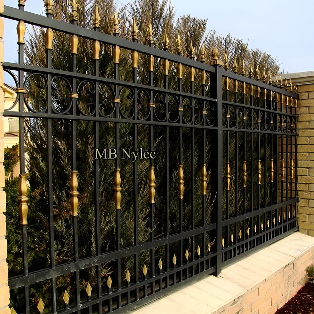 To ogrodzenie zostało zaprojektowane jako spokojna, ale wyrazista oprawa posesji o podwyższonym standardzie. Forma opiera się na czytelnym układzie metalowych przęseł, które budują wrażenie porządku i stabilności już od pierwszego spojrzenia. Całość nie konkuruje z architekturą budynku, lecz naturalnie ją uzupełnia i podkreśla charakter nieruchomości. Zastosowane proporcje sprawiają, że ogrodzenie prezentuje się solidnie, a jednocześnie zachowuje wizualną lekkość. Jest to rozwiązanie stworzone z myślą o domach jednorodzinnych oraz rezydencjach, gdzie estetyka ma znaczenie równie duże jak trwałość.